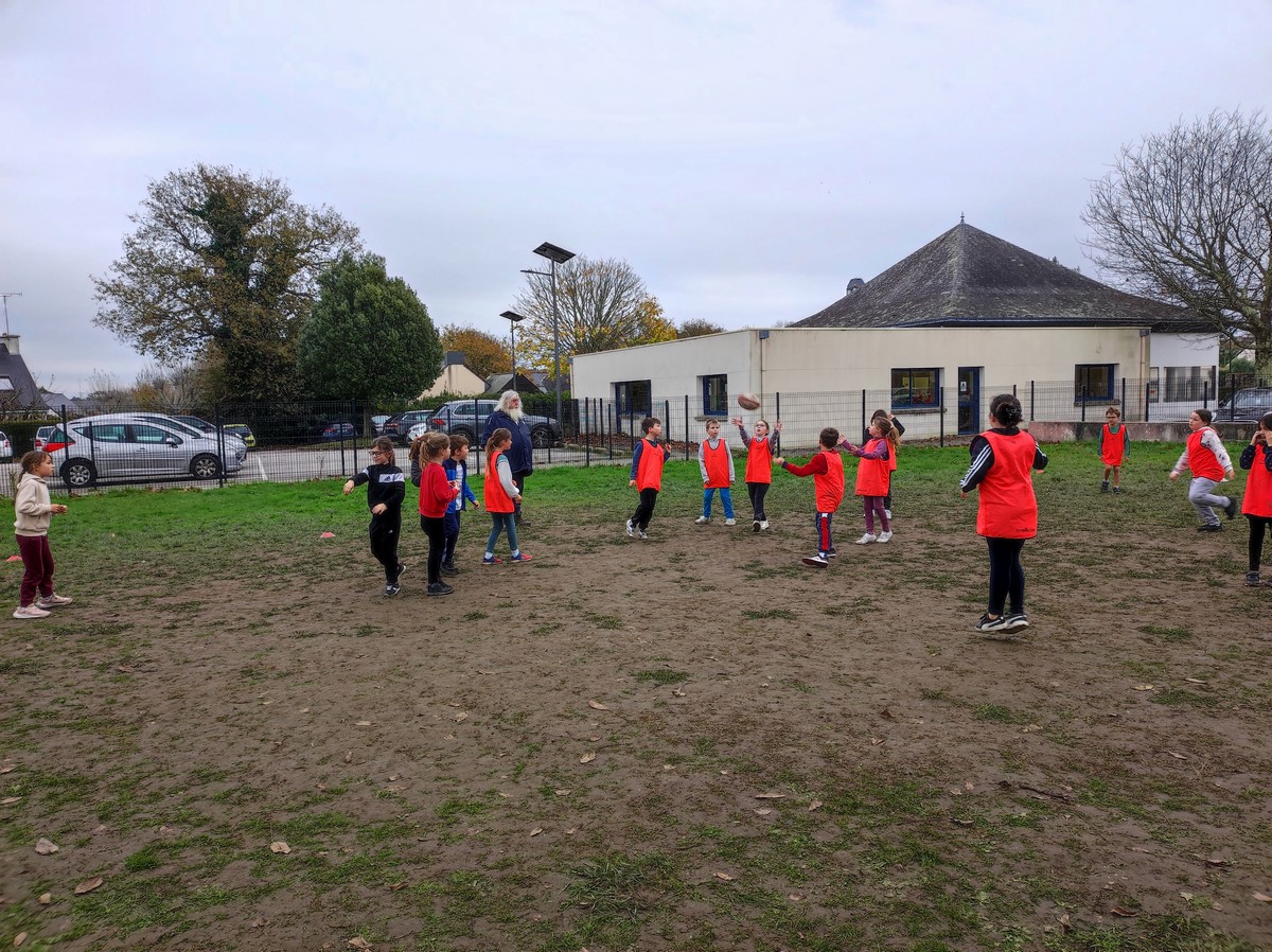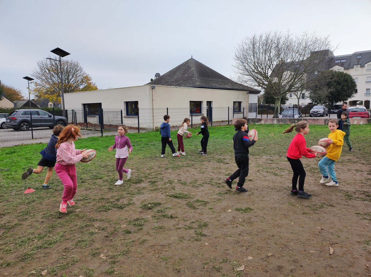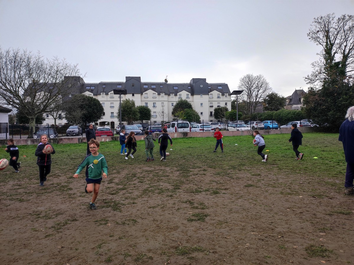 Comme chaque année, les élèves de la Grande section au CM2 ont pu être initiés au rugby. Les bénévoles du Rhuys Rugby Club sont intervenus les jeudis pendant 6 séances. Meme si les passes étaient incertaines, les élèves se sont donnés à fond et les essais étaient au rendez-vous.