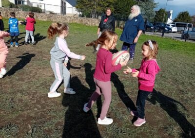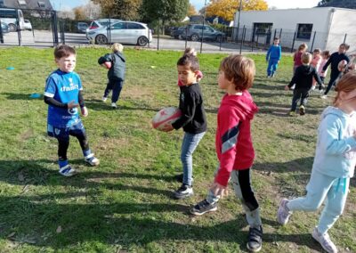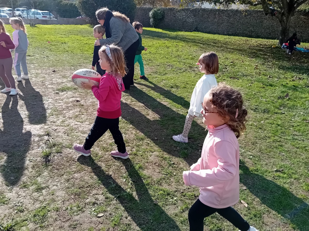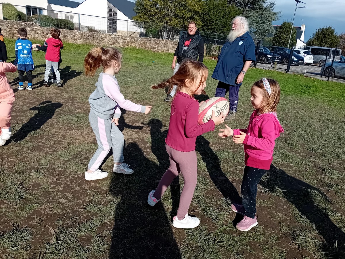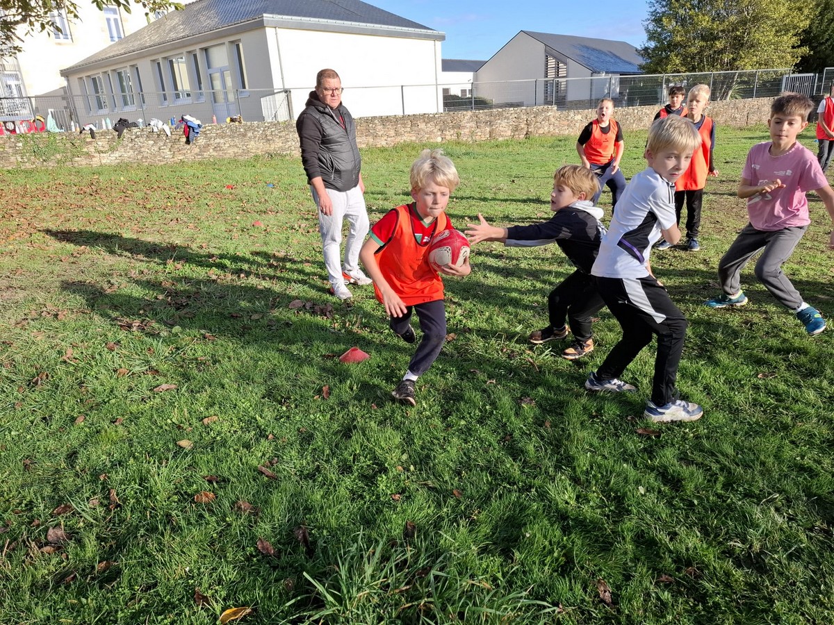 Comme chaque année, les élèves de la Grande section au CM2 ont pu être initiés au rugby. Les bénévoles du Rhuys Rugby Club sont intervenus les jeudis pendant 6 séances. Meme si les passes étaient incertaines, les élèves se sont donnés à fond et les essais étaient au rendez-vous.