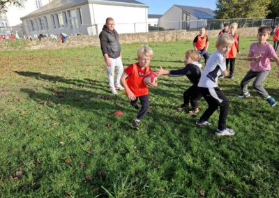 Ici pas de plaquage, les enfants devaient toucher l’adversaire avec deux mains. La météo clémente cette année leur a permis de profiter pleinement de cette activité.